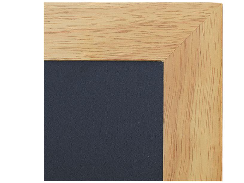 Mehrfach lackierter, witterungsbeständiger Kautschukholzrahmen. UV beständige, stoß- und kratzfeste, leicht zu reinigende, nicht-poröse Kreidetafeloberfläche. Inclusive Wandmontageset.